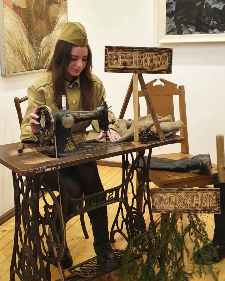 - recreated front-line workshops - photographing in soldier's ginasters and garrison caps in the expositions of the exhibition